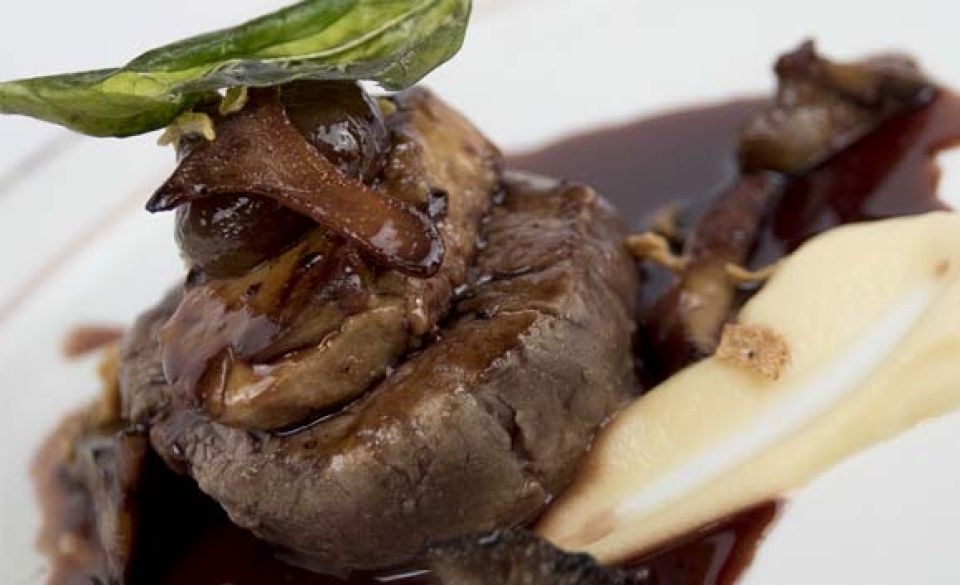 Solomillo de ternera asado con foie-gras fresco y salsa de oporto.