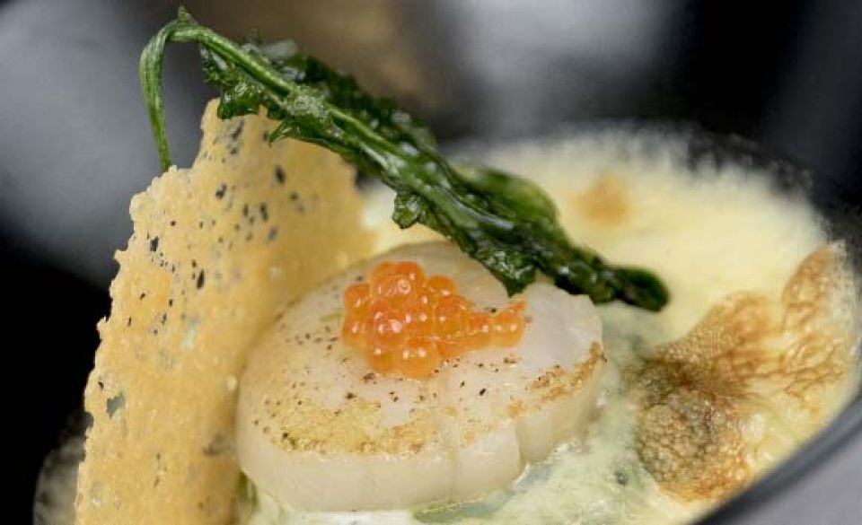 • Erizo de mar gratinado y crujiente de algas.